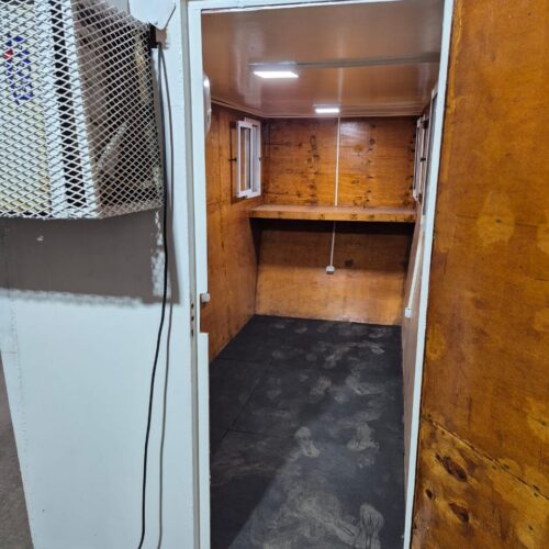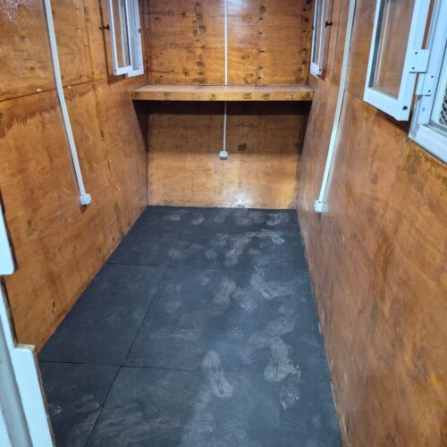 POSSE UNA PUERTA DE INGRESO CON UNA CERRADURA de alta calidad y está recubierto de un enchapado de madera y alfombras de goma en el piso.